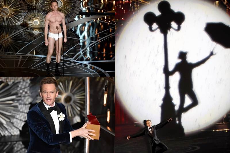 Pero antes de llegar al momento del crimen, hablemos un poco de cómo fue la noche. La gala de los Oscar fue tan larga como siempre. Este año se estrenaba un presentador con muy buenas credenciales. Anteriormente había presentado los Tony y los Emmy con excelentes críticas. Neil Patrick Harris, que tiene un talento especial para el canto y el baile, es ademas un cómico reconocido. A eso se añade su experiencia en el teatro, con lo que el directo no debía ser un problema para él.