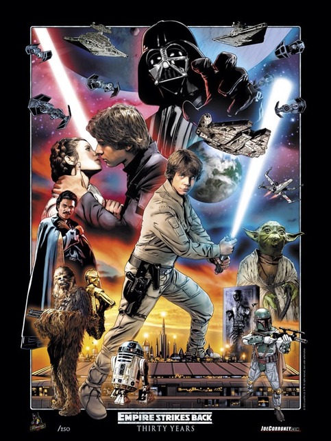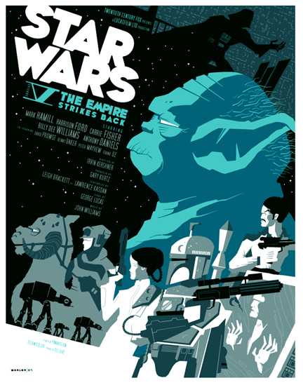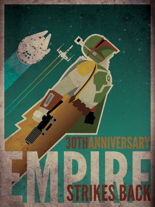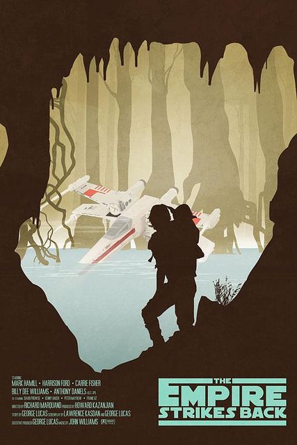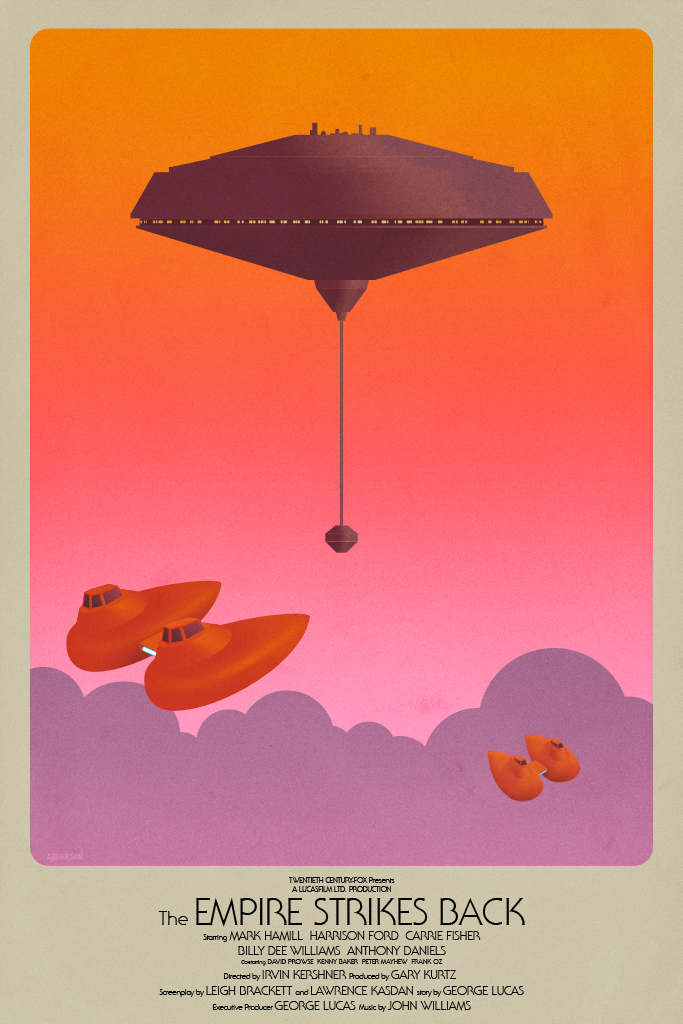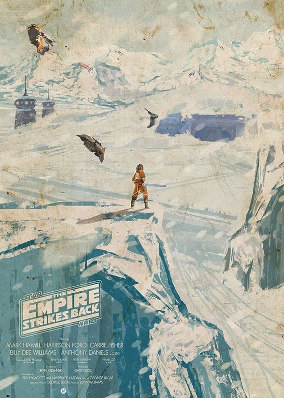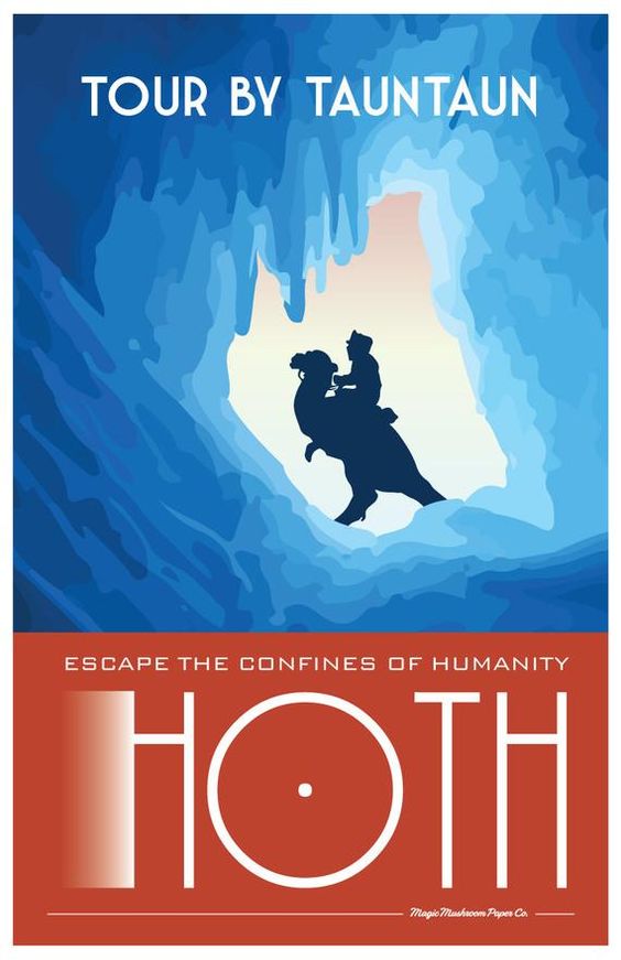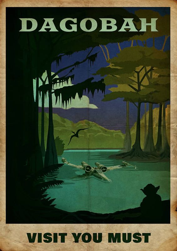 Y, para completar el repaso, una curiosa (y muy extendida) tendencia: la de crear pósters sobre los lugares emblemáticos, en muchos casos imitando a antiguos anuncios turísticos: La Ciudad de las nubes de Bespin
