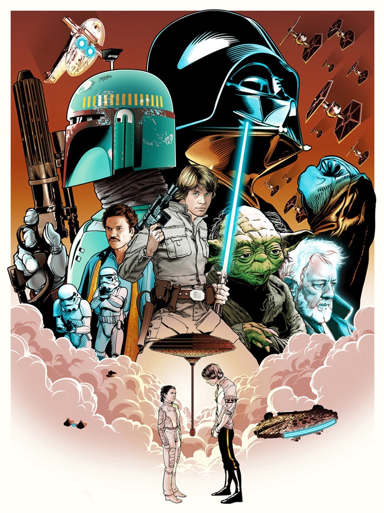 Estos meses de no preparar artículos los va a compensar la locura que es el acercarse al material gráfico de Star Wars. Siendo uno de los fenómenos culturales del siglo XX (y que sigue vigente en este XXI), el material que existe a su alrededor resulta abrumador e inabarcable. Por ello, me voy a centrar en los carteles de la película, pero sobre todo en los No Oficiales. Es decir, en materiales poco vistos o bien creados por Fans o profesionales al margen de la maquinaria de Lucas.