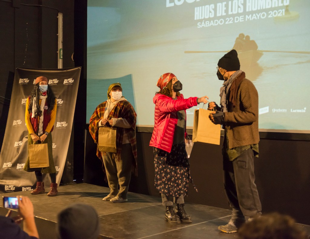 Tras los aplausos con los que finalizó la proyección, tocaba separar al público: por un lado los ganadores del concurso, que se dirigieron al embarcadero a disfrutar de su estupenda travesía, y por otro el resto, que salieron de Casa Ciriza con su punto de envidia, claro, pero no sin recoger antes los regalos que habíamos preparado para nuestros enrolladísimos crowdfunders: paraguas para todos y unas mochilas muy especiales para los que habían elegido la opción Premium durante la campaña.