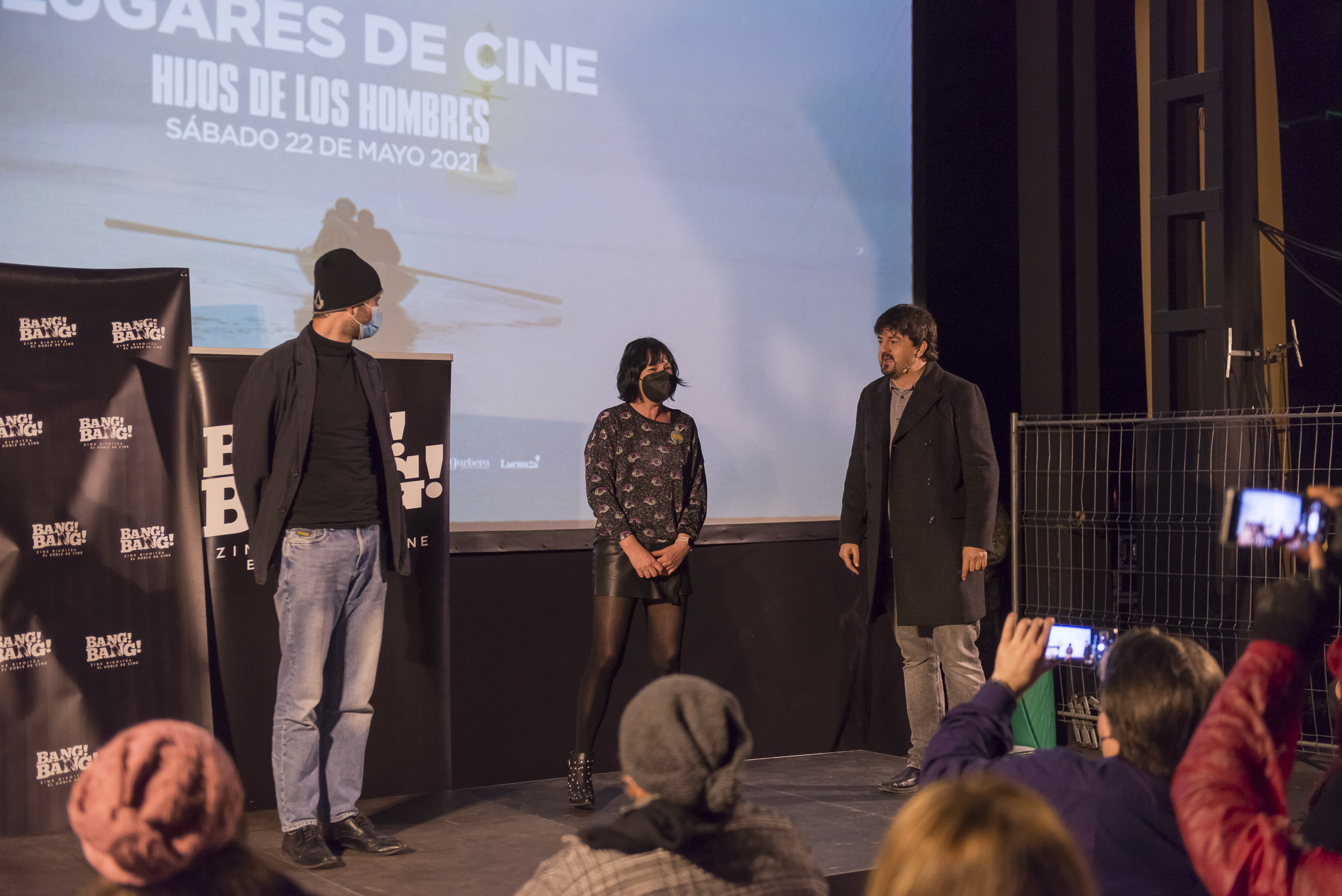 Una vez en la sala principal, todo sonaba familiar pero distinto: las cervezas, las palomitas y la propia proyección resultaban diferentes en un espacio industrial enorme convertido en un Lugar de Cine. Tras la habitual ovación a nuestra ya mítica cabecera, el público se encontró con una sorpresa: para esta ocasión nuestra presentadora titular, Estrella, había pasado el relevo a Ylenia, presentadora habitual de las sesiones en Irun, que se adaptó de maravilla y dejó el listón muy alto