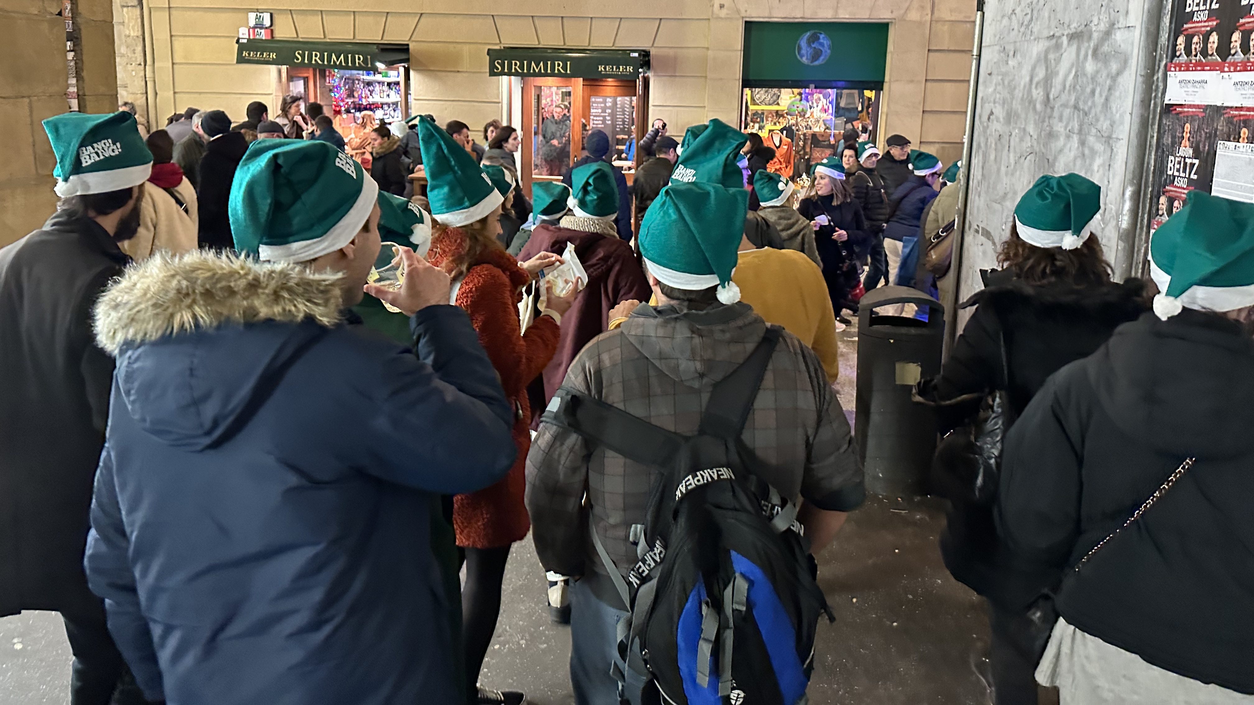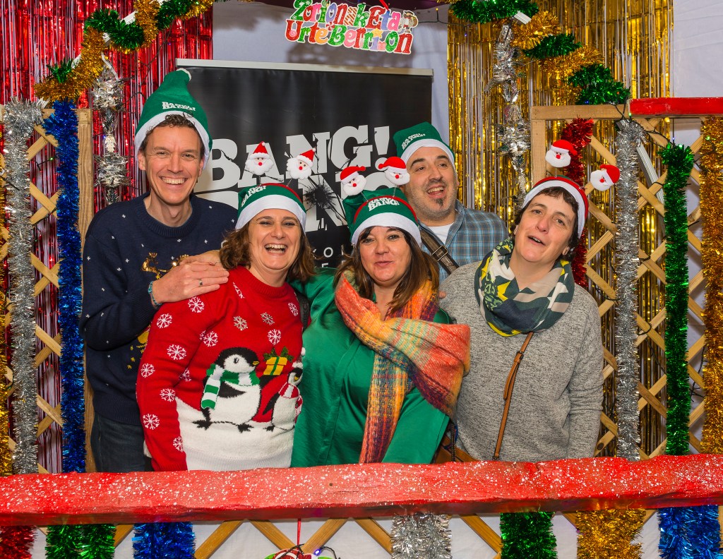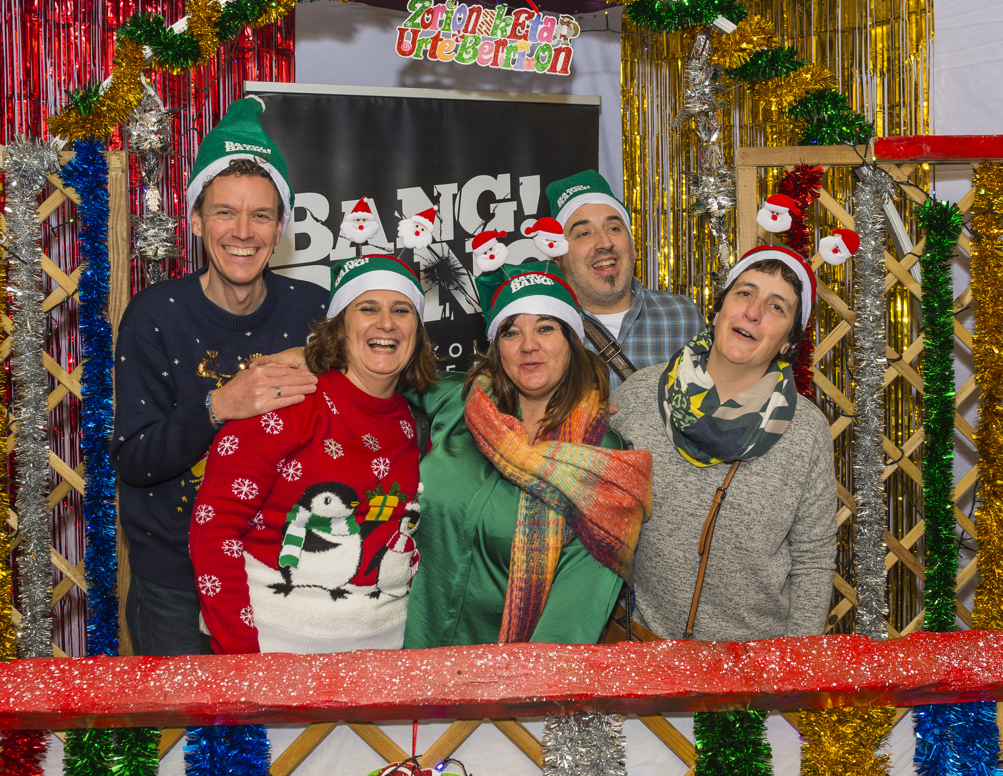 Una vez acabamos con “lo de fuera”, quedaba lo de siempre, nuestro templo: el Principal. Allí habíamos preparado un photocall totalmente kitsch en el que habíamos puesto todos los colorines posibles. Si hay que abrazar el ambiente navideño loco, se abraza. Bien, pues la combinación de esa locura con los gorros verdes que habíamos regalado en las campanadas dio para unas fotos tan gamberras como divertidas que podéis ver aquí: https://flic.kr/s/aHBqjAko92