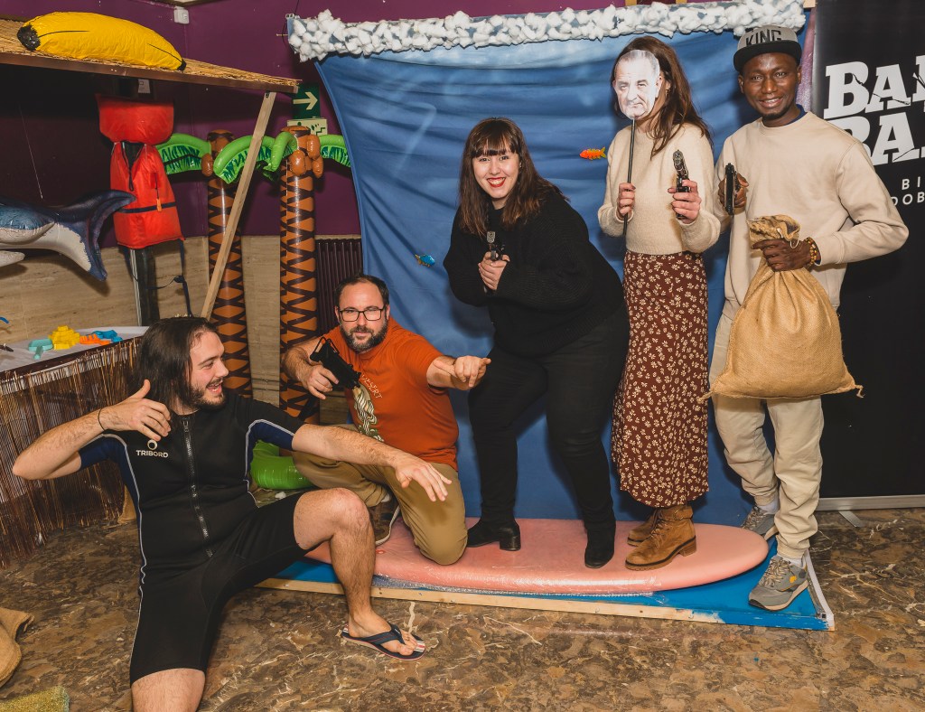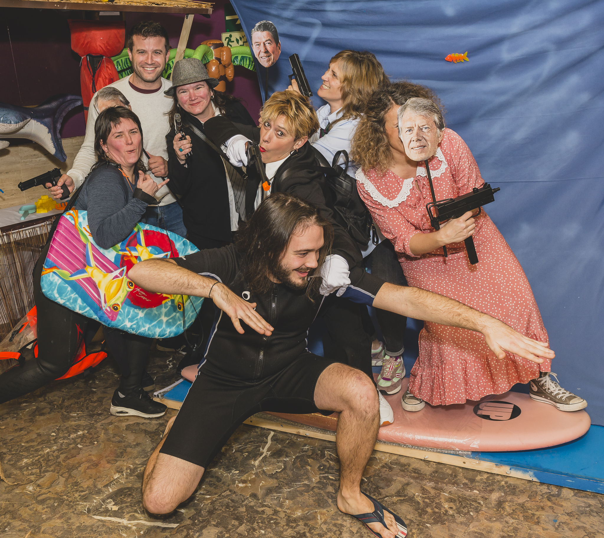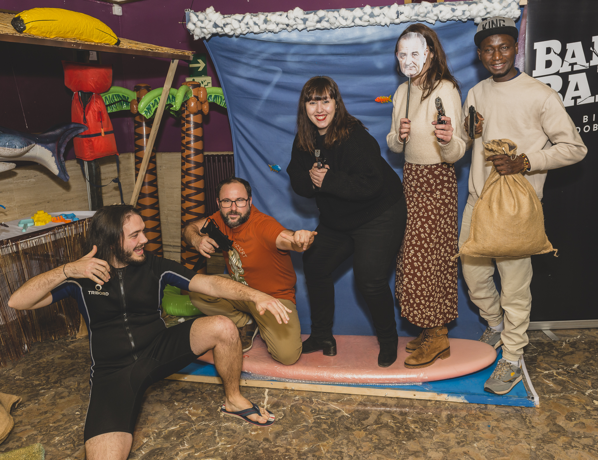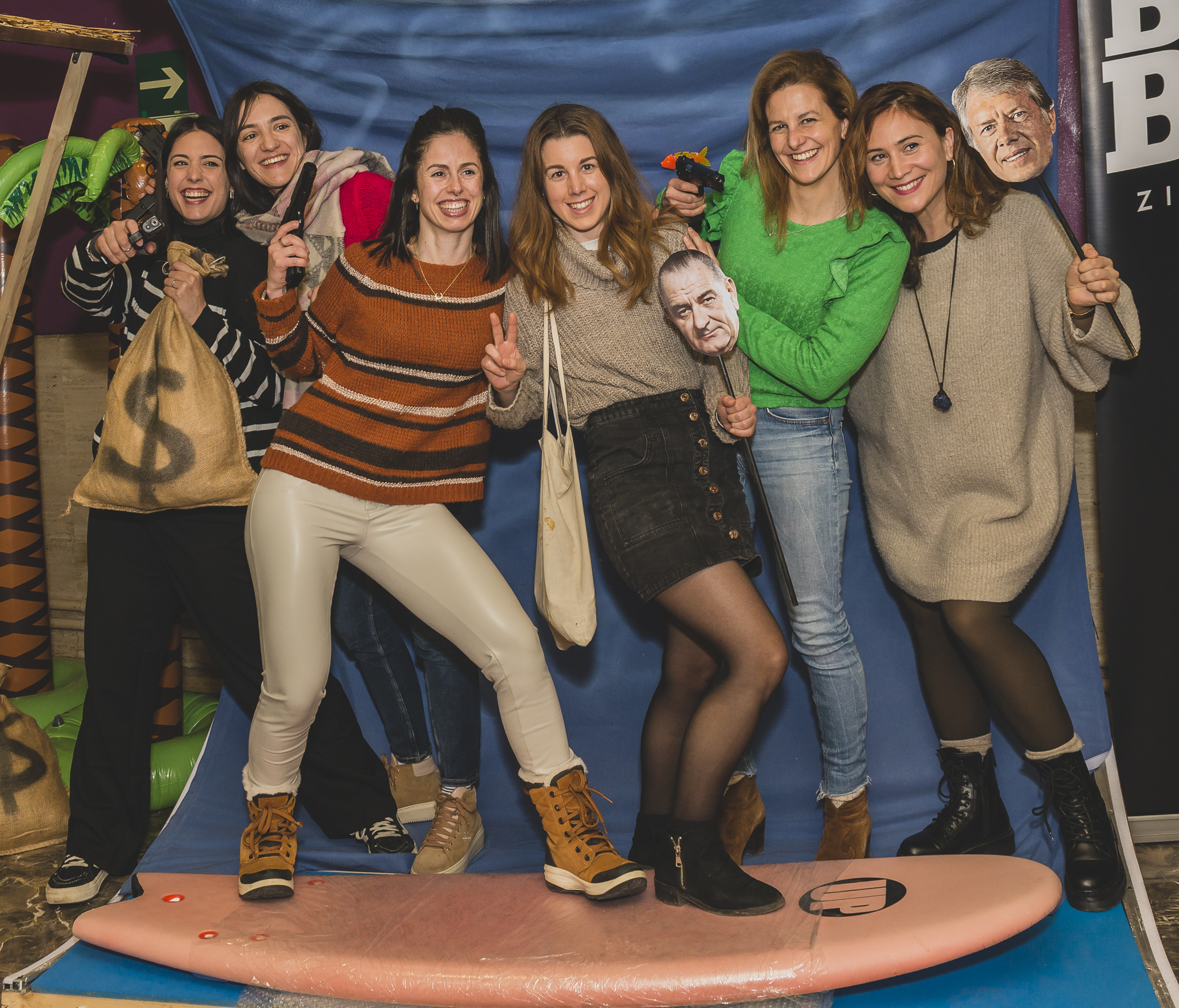 El photocall una vez más estuvo a la altura, e inspirado en Le llaman Bodhí, invitaba a posar entre tablas de surf (gracias a Kirol Musik) y mascaras de ex-presidentes de los EEUU. Las risas y el desmadre fueron continuas como atestiguan las fotos que acompañan al post. PULSA AQUÍ PARA VER TODAS LAS FOTOS