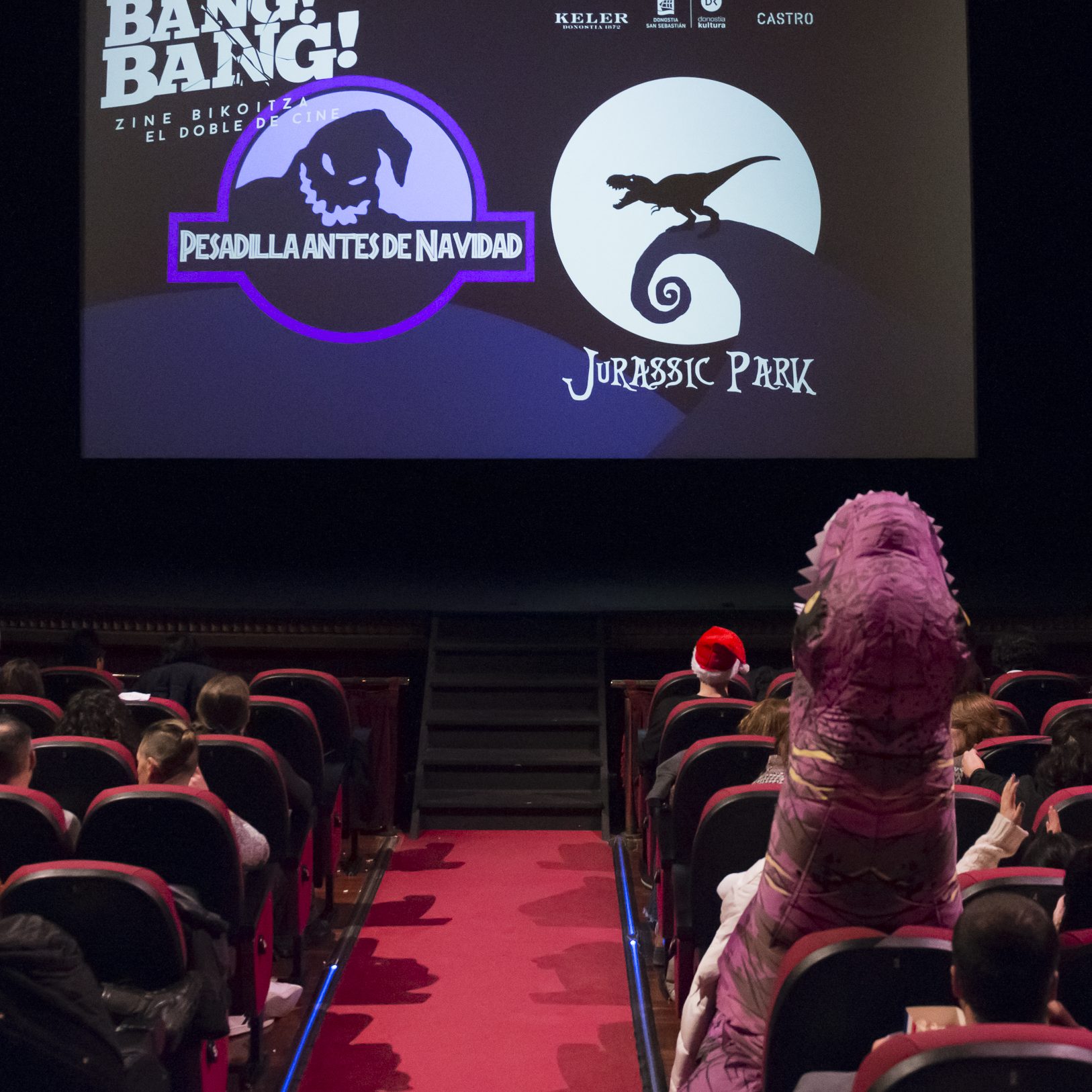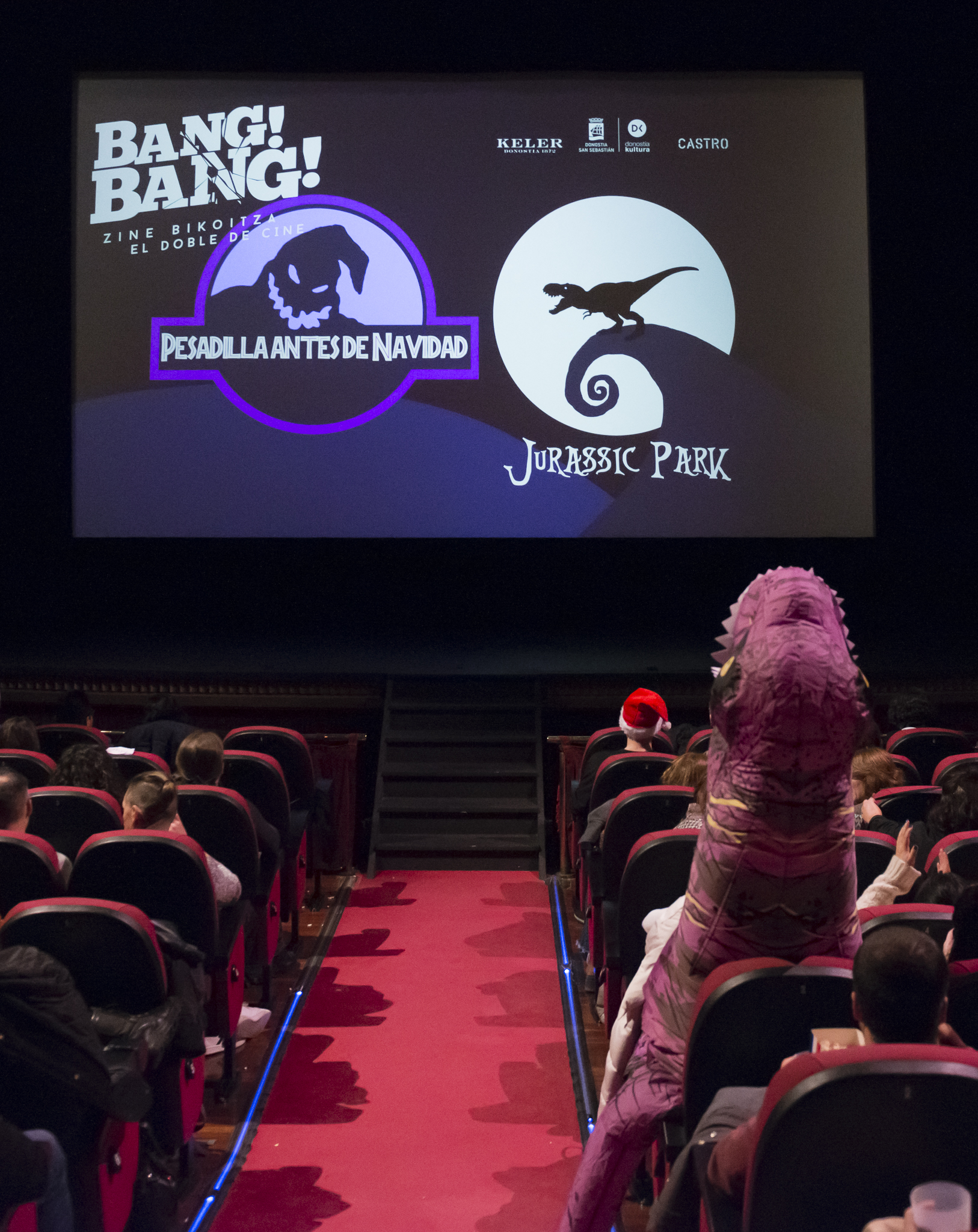 Esta vez lo hubo que esperar a la presentación para que el cachondeo asomara en la sala. Dos dinosaurios se dedicaron a pelear por el patio de butacas convirtiéndose en estrellas de Instagram por una noche. Todo el mundo aprovechó para sacar fotos a esa imagen inédita en Bang Bang y en el Principal.