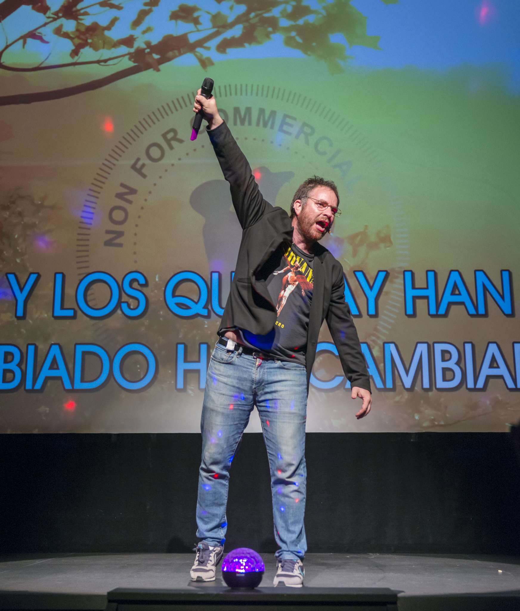 Para la presentación recuperamos a un viejo conocido que nos había acompañado en la mítica sesión de El Exorcista y en la sesión tolosarra de Por un puñado de dólares, Ion «Txiki». Si en la primera se metió al público en el bolsillo con su peculiar interpretación de Damien Karras y en la segunda con su versión local de Clint Eastwood, esta ver Stephen King fue el homenajeado. Y no solo brilló con un show divertidísimo, sino que de regalo obsequió al público con un BRUTAL monólogo de cinco minutos que hizo que todos nos partiéramos de la risa.