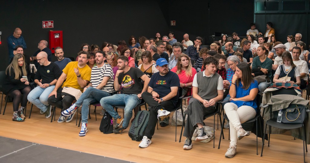 En el segundo bloque subieron al escenario Lucía Fermín, Edorta Subijana y Andoni Tebar, el artista que más carteles ha realizado y que en diciembre sumará uno más a su lista. Aquí entró de lleno la conversación el elemento más disruptor dentro del diseño actual: el uso de la IA. Hubo quien lo defendió como herramienta pero quedó claro que nunca debería ocupar el lugar de un ser humano. Y que aunque esto suceda, el ser humano seguirá creando ya que está en nuestro ADN.