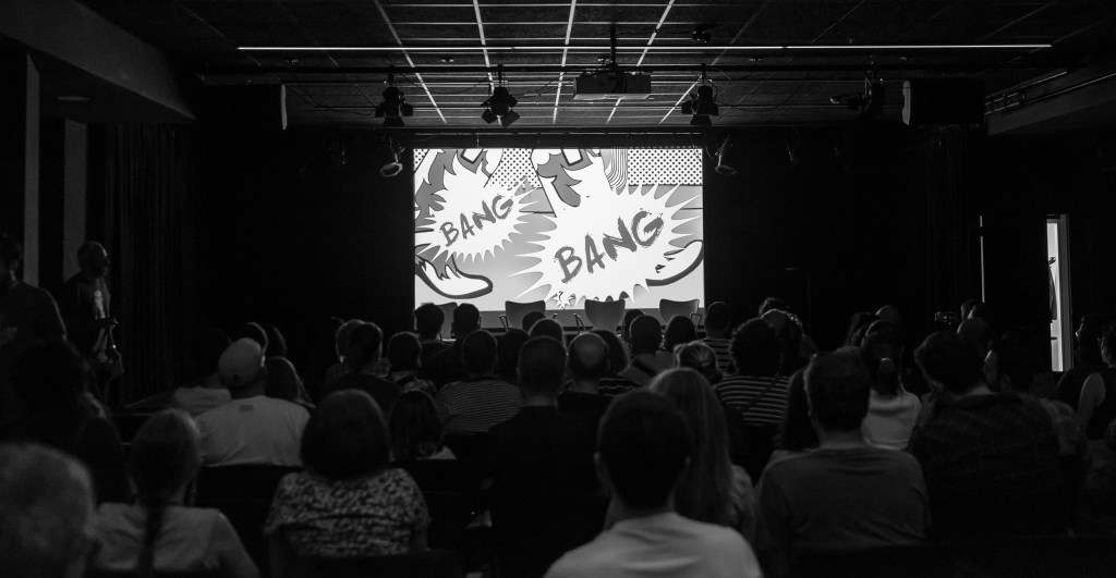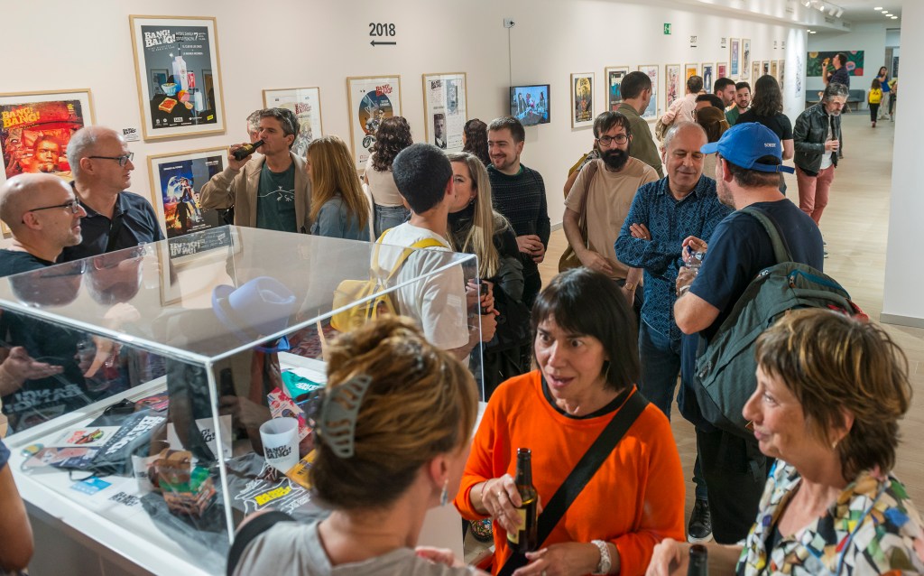El jueves 24 de octubre en la CC Ernest Lluch pudimos saldar una cuenta pendiente y dar el reconocimiento que merecen todos y todas las que han colaborado con Bang Bang realizando alguno de los increíbles carteles que han ilustrado nuestras sesiones durante estos 10 años de aventura en una charla que estuvo moderada por el equipo de El Contraplano: Ricardo Fernández, Iñaki Ortiz y Sandra Rozas. Una sala llena aplaudió a los artistas y demostró que nuestra comunidad no tiene competencia.