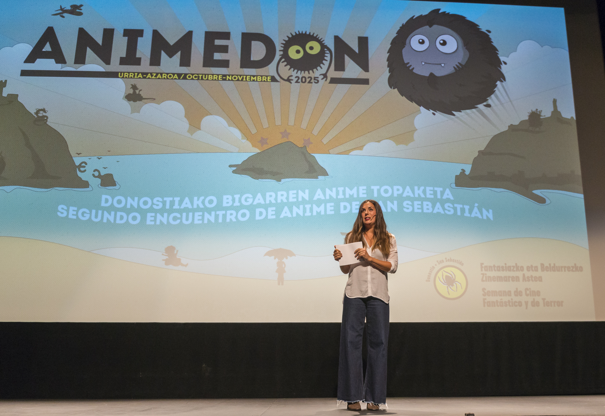 En el escenario esta vez tuvimos unos cuantos videos que hicieron que la presentación fuera un poco más larga de lo habitual: primero uno con las pelis de Animedon, la nueva sección de la Semana de Terror, luego otro video con los largometrajes que podremos ver en la Semana y un video muy especial en homenaje a Drew Struzan, el genial artista que ilustró muchas de las películas que hemos programado estos años y muchas de las que programaremos en el futuro.