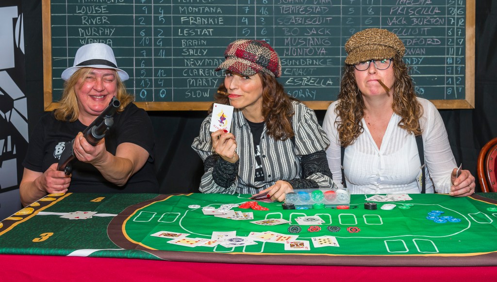 La sesión navideña demostró un año más ser de vuestras favoritas. Las ganas de pasarlo bien se notaban en el ambiente y se notaron en el photocall que esta vez habíamos ambientando basándonos libremente en ‘El golpe’ con una mesa de poker y una pizarra de apuestas de carreras donde muchos se entretuvieron adivinando el origen de los nombres de los caballos. Algunos eran muy obvios, otros una broma interna y algunos no tenían ningún sentido. Puro Bang Bang.