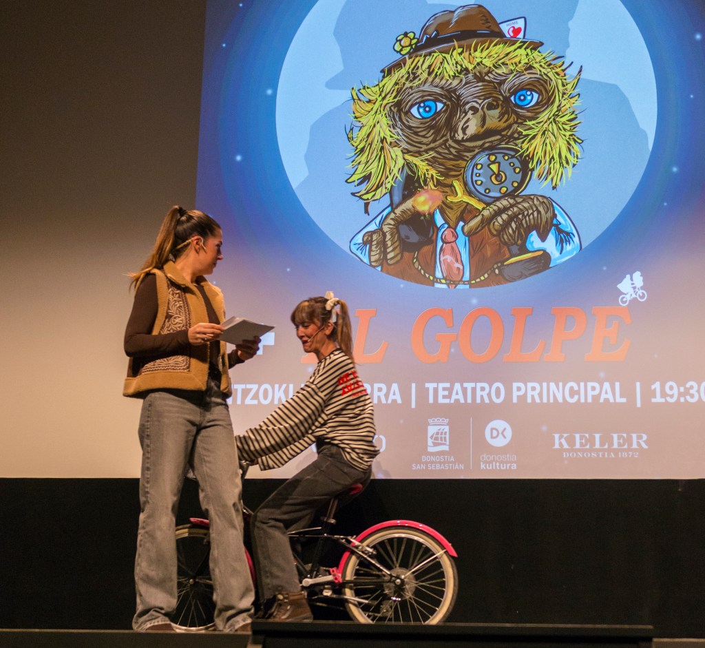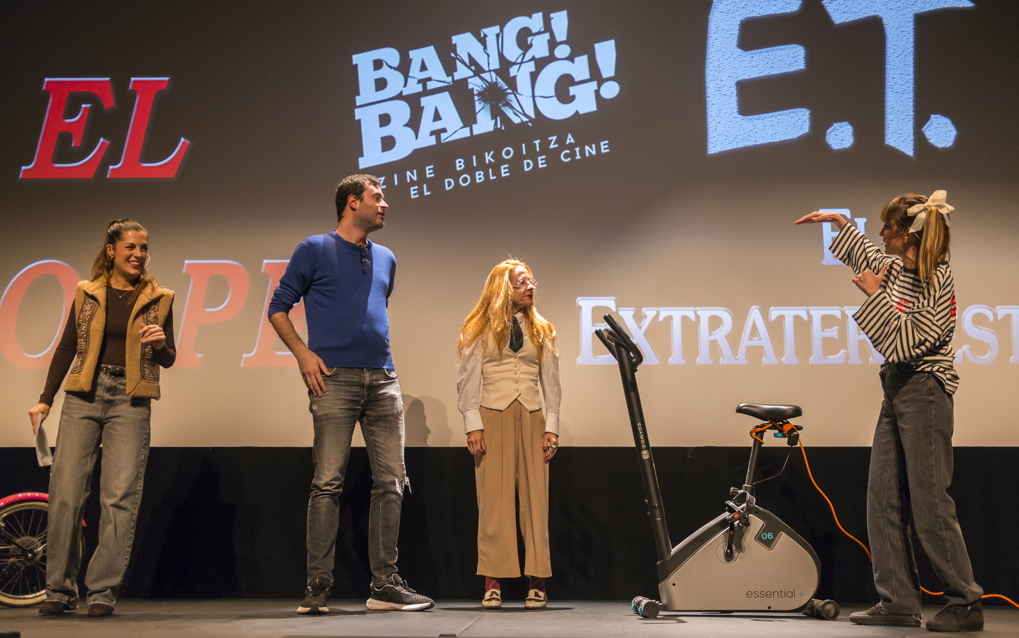 En la presentación contamos en esta ocasión con una invitada de lujo: Miriam Cabeza, la Rosalía donostiarra, que acompañó a Estrella en el escenario. Aprovechó para hablarnos sobre su “particular” relación con nuestro extraterrestre favorito y pidió un par de voluntarios para ayudar a que ET volará a casa y así poder descansar. Cosa que consiguieron a base de pedalear para lograr que apareciera una luna llena que le guiase.