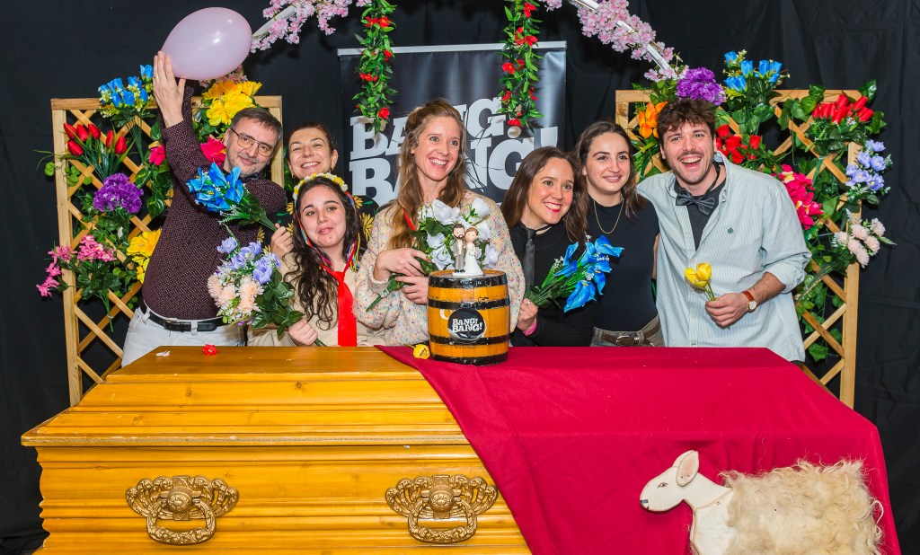El photocall volvió a ser la estrella ambientado en esta ocasión en Cuatro bodas y un funeral con un decorado florido rodeando un ataúd y una oveja que había pasado una mala noche y estaba ligeramente despeluchada. Teníamos miedo que no se le respetase, pero creo que su aspecto hizo que los que posaron mantuvieran las distancias no sea que les contagiase una ETS.