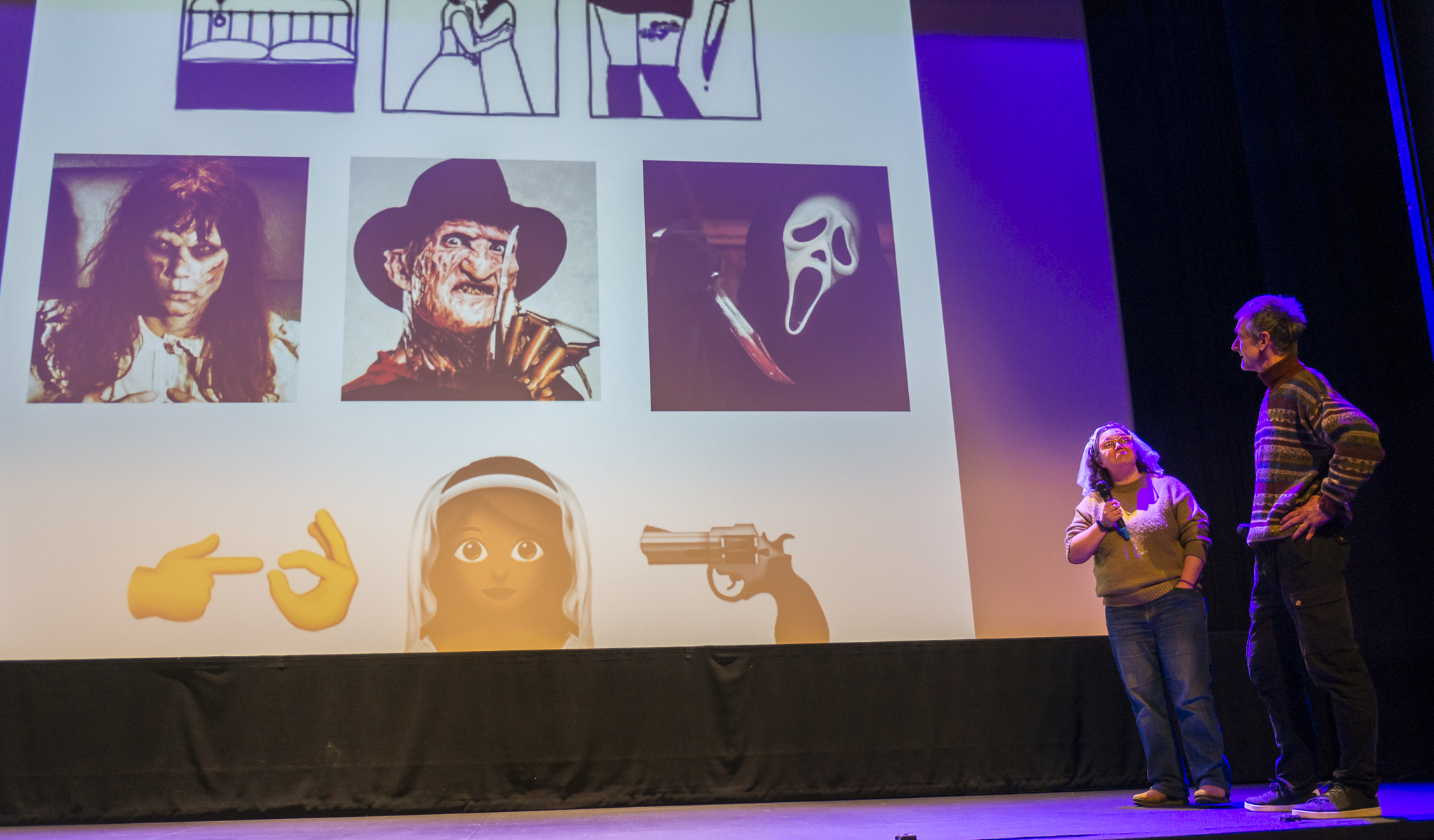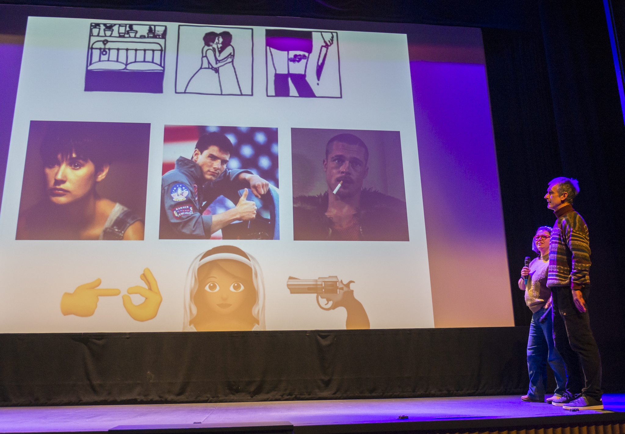 El escenario volvió a ser protagonista gracias a los dos «voluntarios» que se ofrecieron a ayudarnos, primero interpretando algunas de las frases más famosas de la historia del cine t después jugando al Fuck/Marry/Kill, un juego que consiste en elegir de las tres opciones ofrecidas a cual matarías, con cual te casarías y a cual te pasarías por la piedra. Aunque el murmullo de la sala dejó claro que cada cual tenia sus filias y sus fobias, hubo unanimidad en lo de casarse con DiCaprio aunque la mayoría ya estemos fuera de su edad de «comfort».