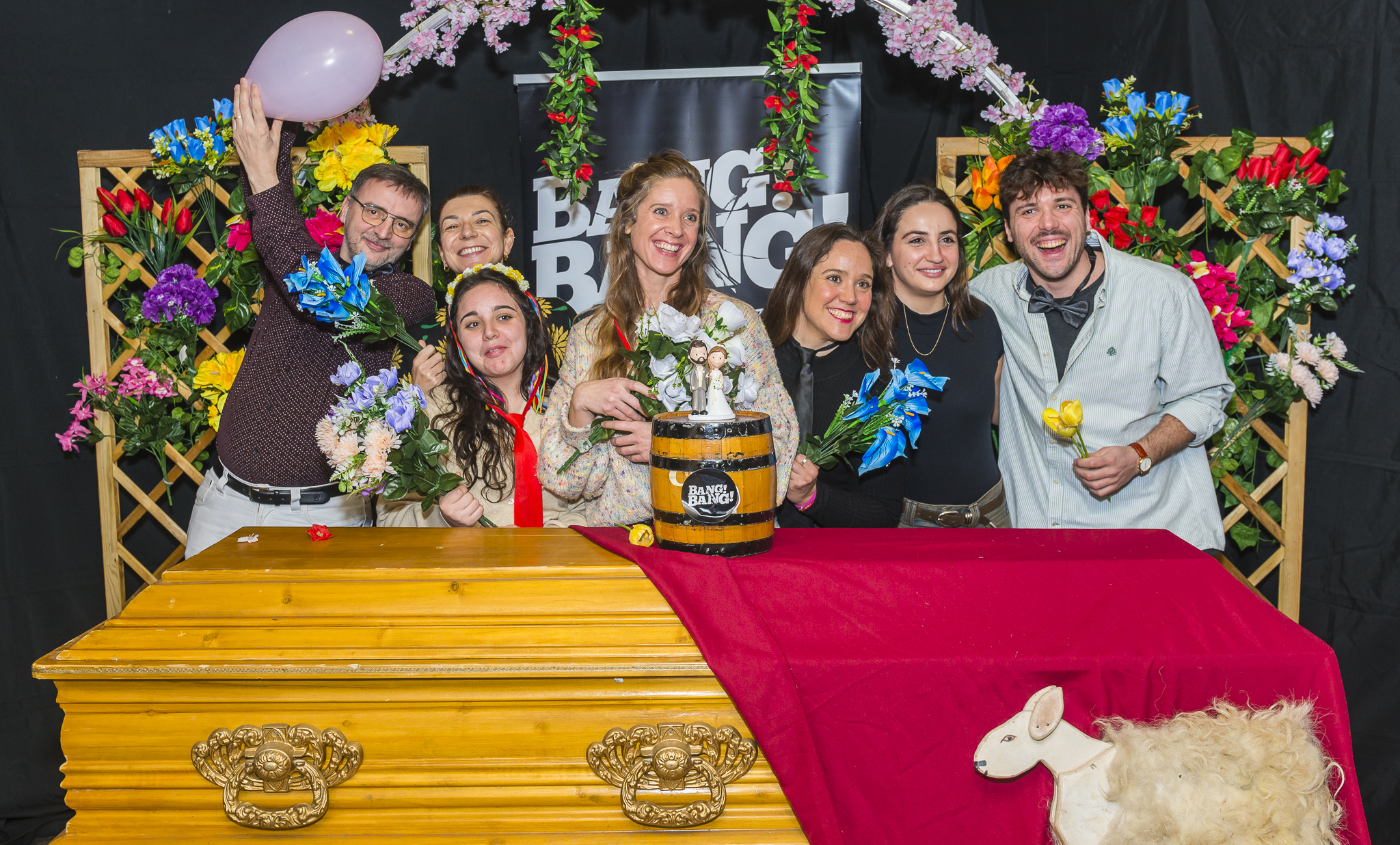 El photocall volvió a ser la estrella ambientado en esta ocasión en Cuatro bodas y un funeral con un decorado florido rodeando un ataúd y una oveja que había pasado una mala noche y estaba ligeramente despeluchada. Teníamos miedo que no se le respetase, pero creo que su aspecto hizo que los que posaron mantuvieran las distancias no sea que les contagiase una ETS.